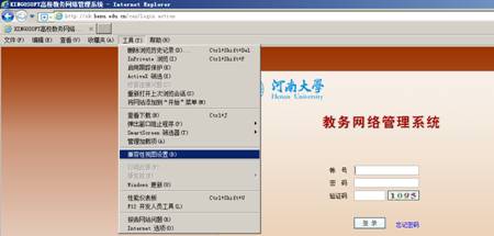 或者,打开教务系统页面后,选择菜单中的“工具”选项中“兼容性视图设置”,将“henu.edu.cn”网址添加到兼容性视图网站中。
