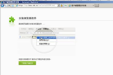 (2)IE浏览器。打开教务管理登录页面后,点击页面中下方的“点我”设置浏览器兼容环境。如果下载的插件被杀毒软件隔离,请找回并执行。