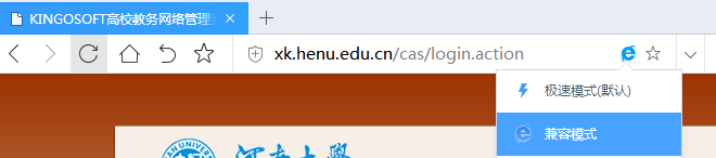 (2)360浏览器。打开教务管理登录页面后,将默认的“极速模式”改为“兼容模式”。