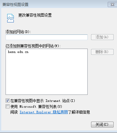 方法1,打开IE浏览器,打开教务系统页面,选择“工具”菜单—“兼容性视图设置”选项,将网站“henu.edu.cn”添加到兼容性视图网站。