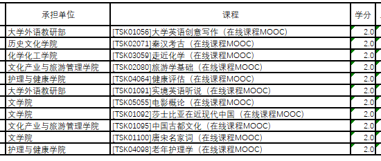 下图是本学期教务系统开设的所有在“线课程MOOC”,请同学们参考: