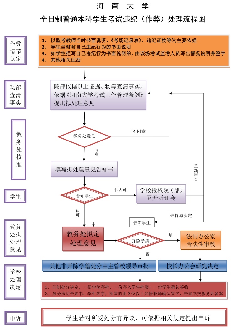 河南大学全日制普通本科学生考试违纪(作弊)处理流程及相关材料