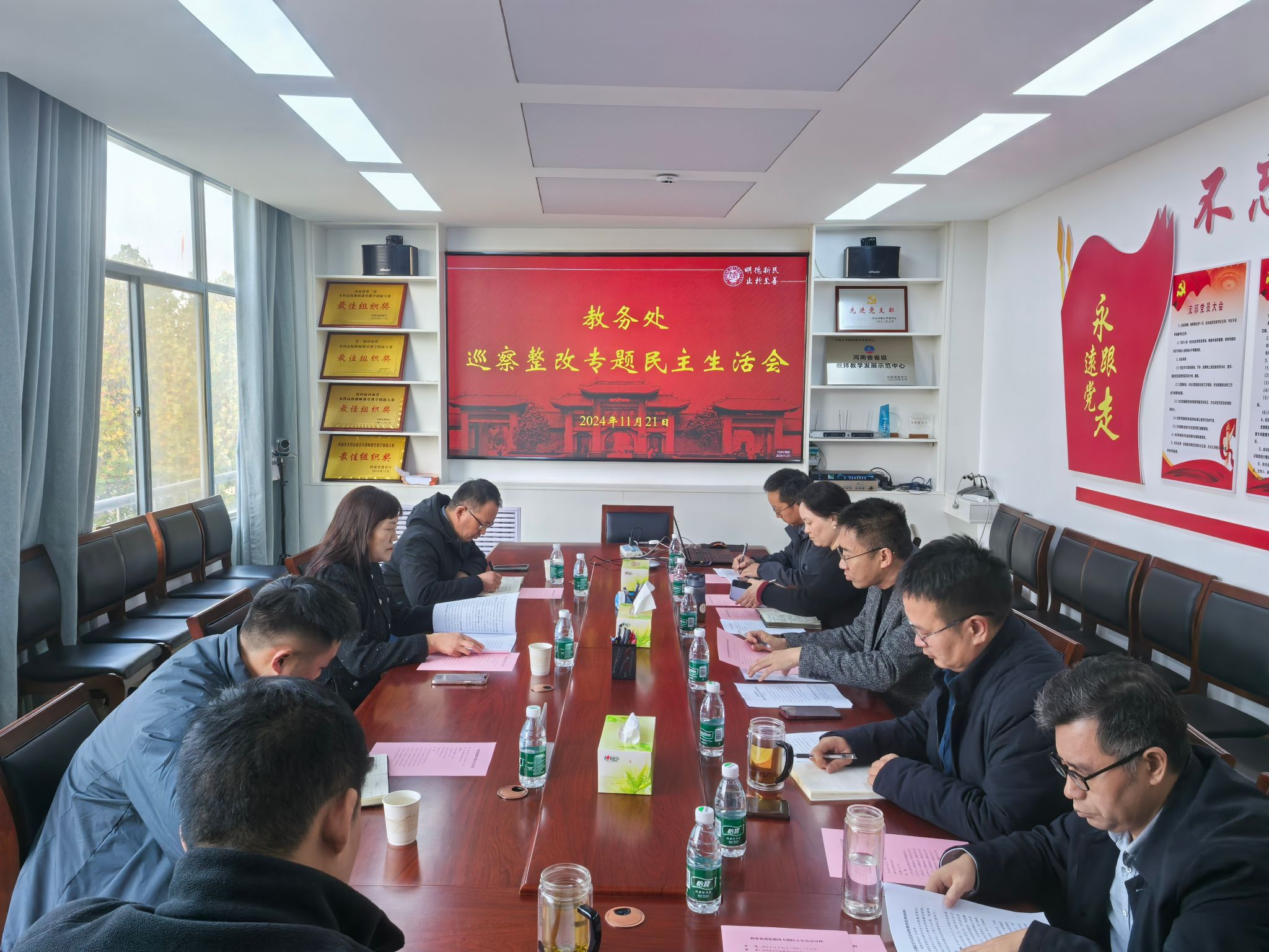 11月21日,教务处党支部巡察整改专题民主生活会在金明校区行政楼352会议室召开。校党委第八轮巡察第五巡察组组长刘家丽、校纪委监察专员办公室第二纪检监察室主任杨戬、党委巡察办公室工作人员郑林浩到会指导。会议由教务处处长何欣主持。