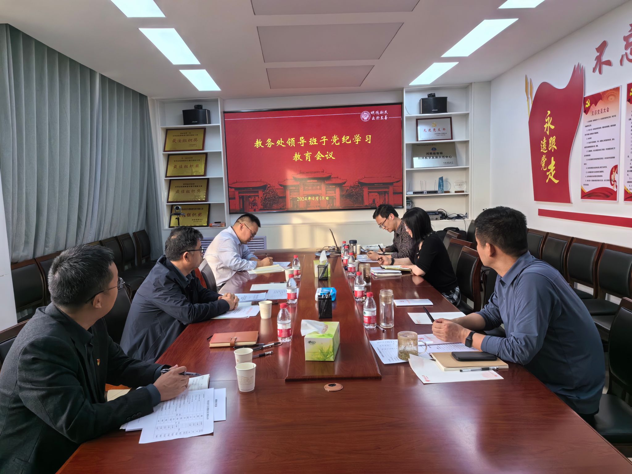 按照本科生院党委党纪学习教育工作计划和教务处党支部党纪学习教育工作安排,4月18日下午教务处召开领导班子党纪学习教育会。会议由课程中心副主任郝兆杰主持。