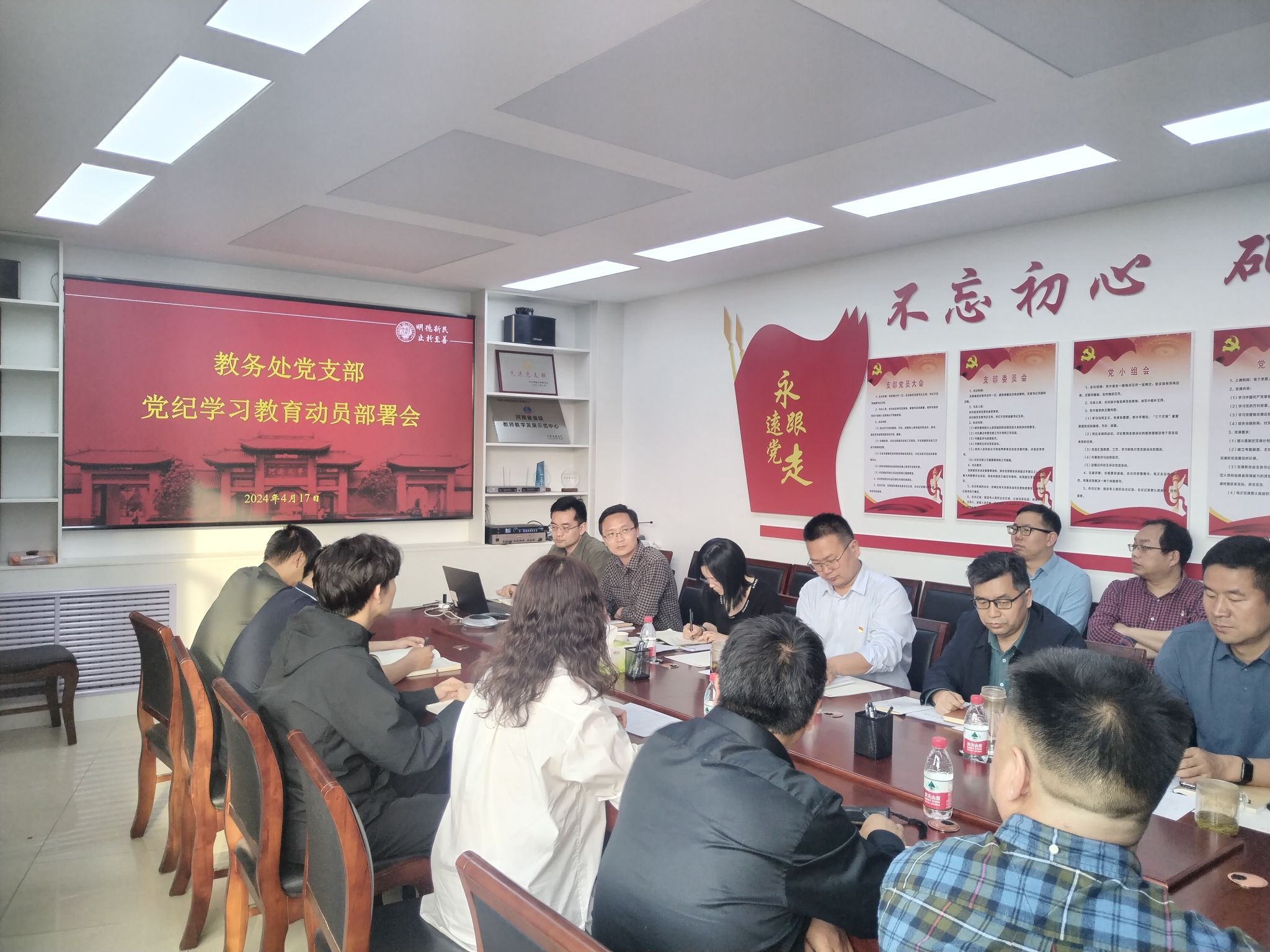为深入学习贯彻习近平总书记关于党纪学习教育的重要讲话精神,落实学校党委关于开展党纪学习教育的工作部署。4月17日下午,教务处在352会议室召开党纪学习教育动员部署会,教务处领导班子及全体工作人员参加。会议由课程中心副主任郝兆杰主持。
