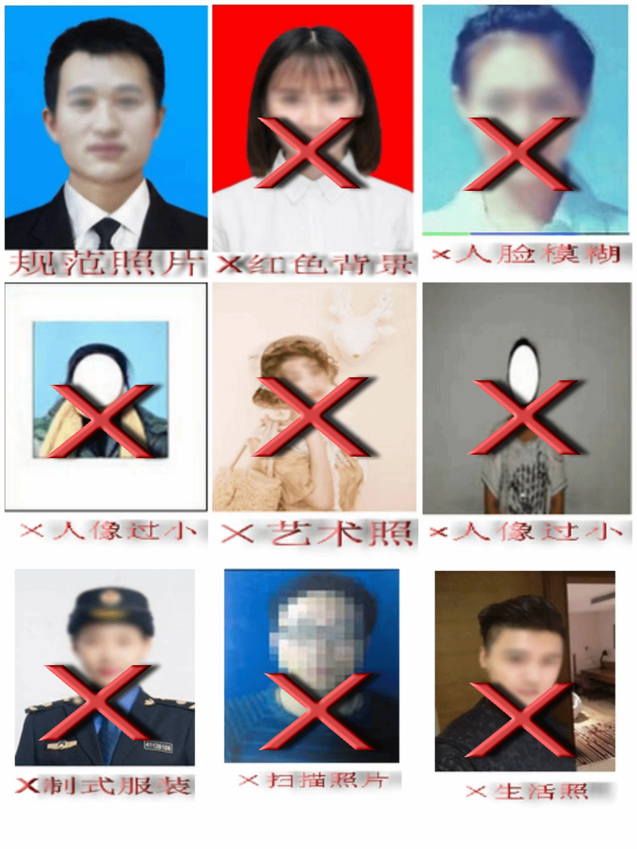 1.照片要求人像清晰。不得进行任何修饰,成像区要求头部占比整个照片3/5以上;
