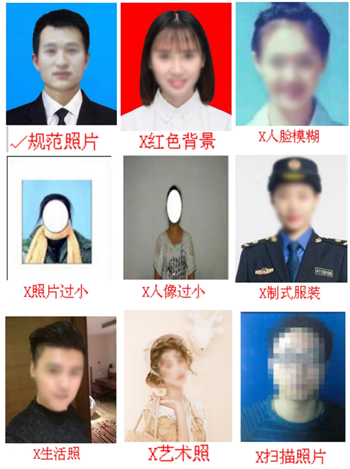 2.照片要求人像清晰,轮廓分明,层次丰富,神态自然。不得进行任何修饰,成像区要求头部占比整个照片3/5以上。