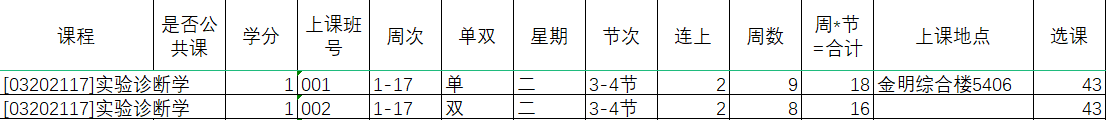 b)如果一门课中,有理论课时也有实验课时,请参照培养方案进行核对。