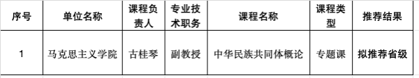 关于征集铸牢中华民族共同体意识精品课推荐结果的公示