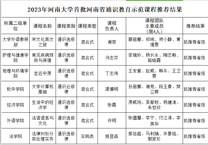 关于2023年河南大学首批河南省通识教育示范课程推荐结果的公示
